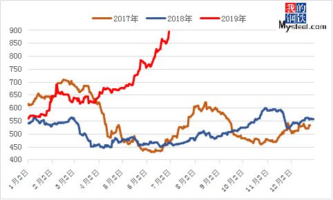所以從主要價(jià)格因素的變化也能看出來(lái)它在逐漸的轉(zhuǎn)變,從供應(yīng)主導(dǎo)開(kāi)始向需求主導(dǎo)轉(zhuǎn)移,對(duì)于目前和2019年下半年的市場(chǎng)價(jià)格,也需要去尋覓供需關(guān)系的“軌道”如何鋪墊,不妨從原材料的供需開(kāi)始,再看鋼材的消費(fèi)力度,從而推到出未來(lái)供需走勢(shì)。