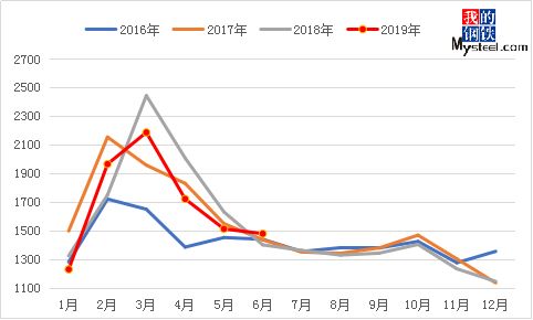 另外,對(duì)于各品種來(lái)說(shuō),長(zhǎng)材的消費(fèi)依舊強(qiáng)勁,板材的造船和汽車行業(yè)都同比下滑的情況下,使得整個(gè)板材的消費(fèi)進(jìn)入低谷期。那么對(duì)于下半年的價(jià)格走勢(shì)依然可能是長(zhǎng)強(qiáng)板弱的趨勢(shì)。